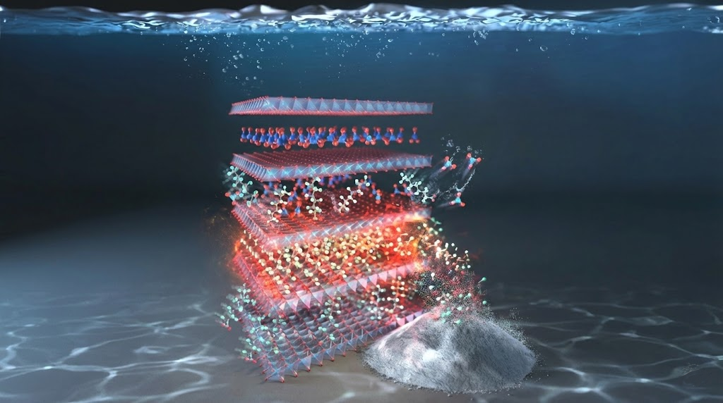 تستخدم طريقة الترشيح الجديدة هذه مادة هيدروكسيد مزدوج الطبقات (LDH) تجمع بين النحاس والألومنيوم مع النترات.